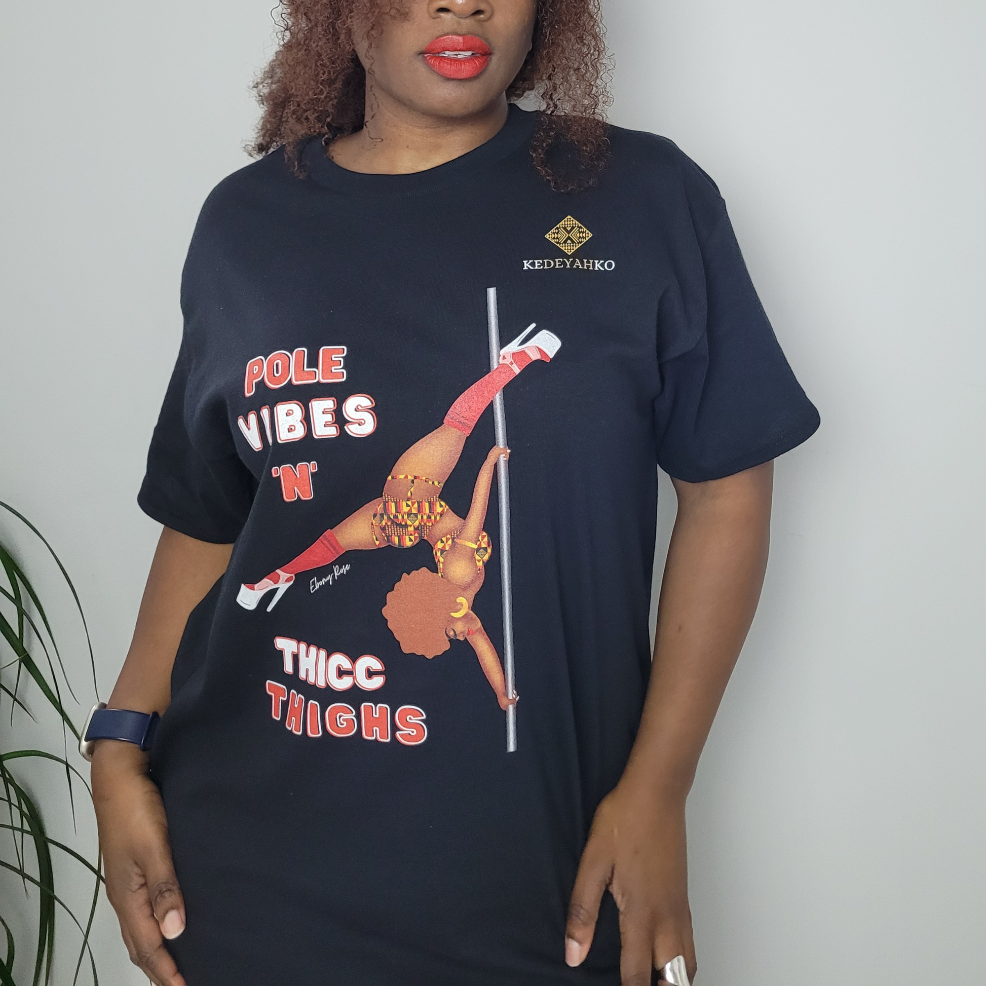 At Kedeyahko, we blend fashion, function, fun, and our love for pole. The Pole Vibes N Thicc Thighs crop top is the perfect embodiment of black girls that love to pole. So, why settle for a basic when you can go BOLD with a Kedeyahko tee.
