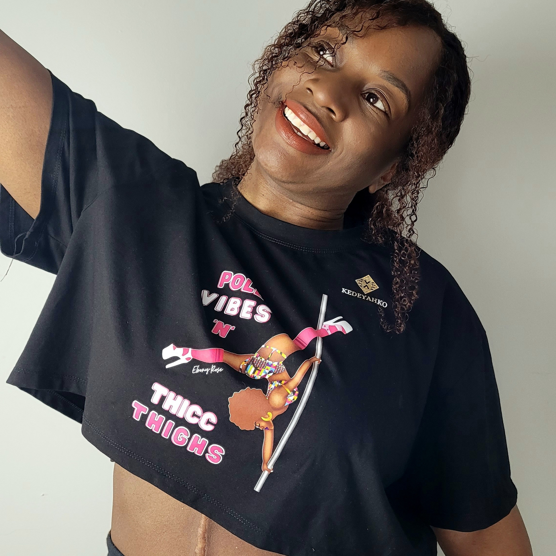 But wait, there's more! We love matchy match at Kedeyahko so why not elevate your look and celebrate your black girl magic by pairing the crop top with our signature Tote bag and make a real statement wherever you go. At Kedeyahko, we blend fashion, function, fun, and our love for pole. The Pole Vibes N Thicc Thighs crop top is the perfect embodiment of black girls that love to pole.